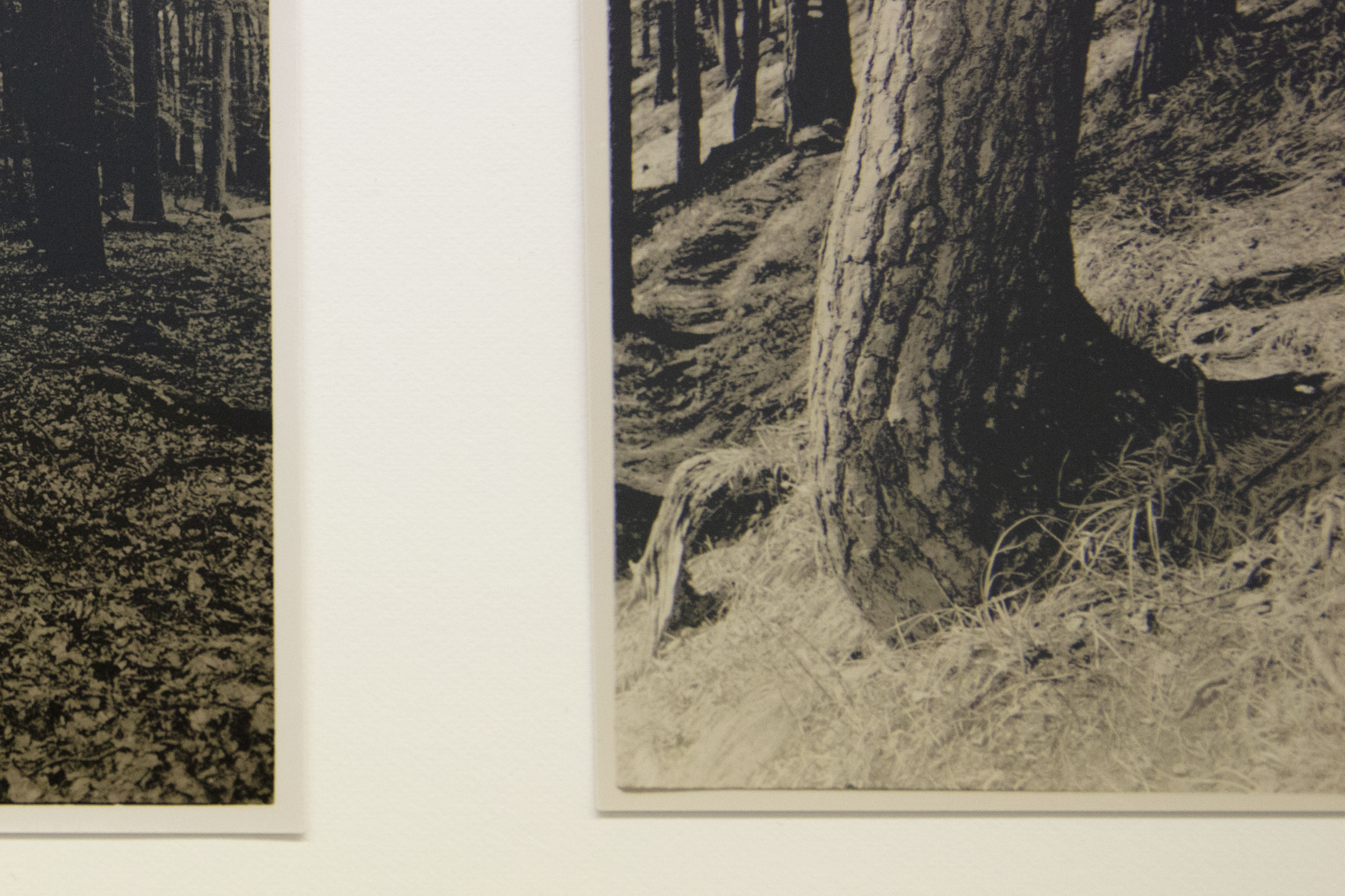 “She avoided the even road and walked along the wooden paths.” For more than a year, the markings on these trees showed me the way to different destinations. Here, taken out of context and freed from their actual meaning, they form a new forest. They bear witness to discovery, to moving on, and to being alone in nature, which allows you to see more clearly again. The used lith process also requires patience and trust in an initially invisible development: the exposed paper lies in the tub, for a long time you look at an empty sheet, until gradually delicate traces become visible. Clear lines and contrasts only very slowly emerge from a dull, veiled image and make the path markings recognizable as such; in this collection they are relics of searching. A search that continues in terms of content in a fictitious map interpretation in which the trees now subordinate their originally pioneering function to an intuitive and personal discussion.